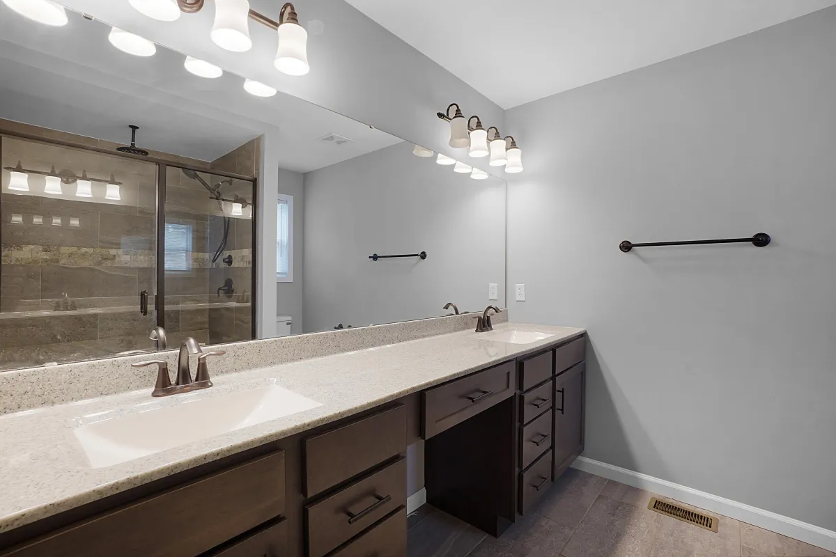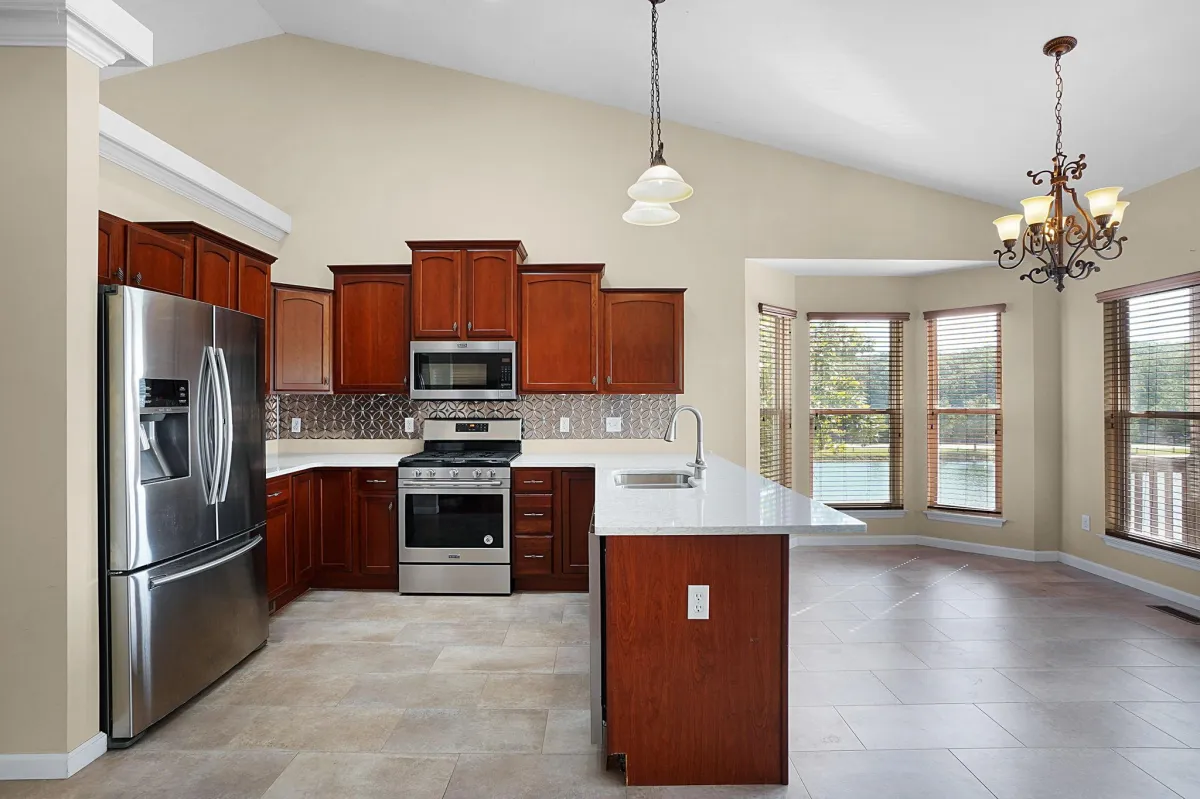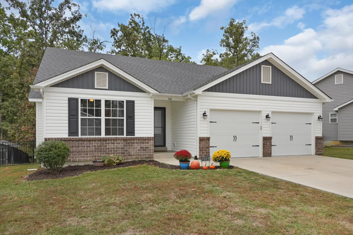 Welcome to 510 Indian Lake Drive, where comfort and style come together in a setting that feels like home the moment you walk through the door. This thoughtfully designed 3-bedroom residence features a split bedroom floor plan, giving everyone their own space while keeping the heart of the home open and inviting. The vaulted great room sets the stage with beautiful floors that flow seamlessly into the kitchen and dining areas, creating a warm and welcoming atmosphere. The kitchen is truly the centerpiece, featuring a huge center island with a breakfast bar, granite countertops, subway tile backsplash, and a pantry for extra storage. It’s perfect for both everyday living and entertaining. Just off the kitchen, the bright breakfast room opens to the back patio, making it easy to enjoy meals outdoors or simply relax while overlooking the peaceful, wooded backdrop. The luxury vaulted master suite is a retreat of its own, offering a spacious walk-in closet, dual sinks, and a beautiful tiled shower. A main floor laundry room adds convenience to your daily routine. The lower level is ready for your personal touch, with an egress window and a rough-in for a full bathroom, making it ideal for future expansion. Outside, you’ll love the fenced backyard that backs to wooded common ground, offering privacy and a natural view. Plus, you’ll have three neighborhood lakes to explore, adding a touch of adventure to everyday life. This home combines thoughtful design with a beautiful setting, ready for its next chapter with you.